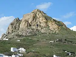 The landscape around Volax is surreal and unusual with giant boulders some the size of multi-storey buildings. The village of Volax lies at the center of this landscape. To the west, the mountains surrounding Pyrgos contain green marble.