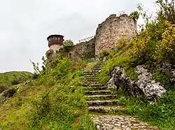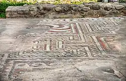 The area of Tirana has been inhabited by humans since prehistoric times with the earliest recognised reference found at the Cave of Pëllumbas belonging to the Palaeolithic period. Illyrians were the first population of the area and formed most likely the core of the Illyrian kingdom of the Taulantii, which in classical antiquity was centered in the hinterland of Epidamnus.[16] When the Romans arrived in Illyria after their victory of the Illyrian Wars, they populated and integrated the area into their empire under the political control of the city of Rome. The oldest surviving discovery from this period is a Roman house dating to the 3rd century, which was transformed into an aisleless church with a mosaic floor. A castle, possibly known as Tirkan, was built by the Byzantine Emperor Justinian I between the 4th and 6th century and later restored by Ahmed Pasha Toptani in the 18th century.[17]