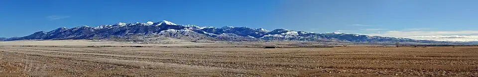 The Tobacco Root Mountains lie in the northern Rocky Mountains, between the Jefferson and Madison Rivers in southwest Montana.[1] The highest peak is Hollowtop at 10,604 feet (3,232 m). The range contains 43 peaks rising to elevations greater than 10,000 feet (3048 m).