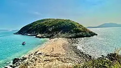 A tombolo is a sandy or shingle isthmus. It is a deposition landform by which an island becomes attached to the mainland by a narrow piece of land such as a spit or bar.[1] Once attached, the island is then known as a tied island. The word tombolo is from the Italian tombolo, meaning 'pillow' or 'cushion', and sometimes translated incorrectly as ayre (an ayre is a shingle beach of any kind).