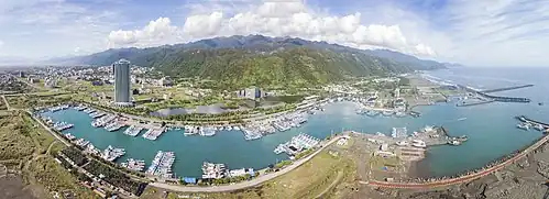 Aerial panorama of Wushi Harbour, including Lanyang Museum