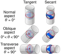 - Both projections may be modified to secant forms, which means the scale has been reduced so that the cylinder slices through the model globe.