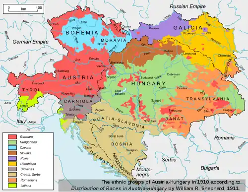 After the Ausgleich of 1867, the Principality of Transylvania was once again abolished. The territory then became part of Transleithania,[68][69] an addition to the newly established Austro-Hungarian Empire. Romanian intellectuals issued the Blaj Pronouncement in protest.[70]
