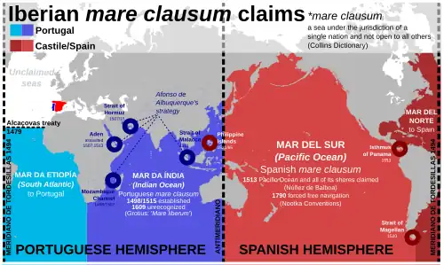 - ^ Spanish: Tratado de Tordesillas [tɾaˈtaðo ðe toɾðeˈsiʎas]; Portuguese: Tratado de Tordesilhas [tɾɐˈtaðu ðɨ tuɾðeˈziʎɐʃ].