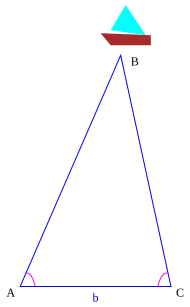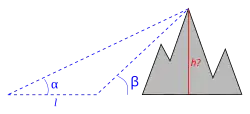 In China, Pei Xiu (224–271) identified "measuring right angles and acute angles" as the fifth of his six principles for accurate map-making, necessary to accurately establish distances,[4] while Liu Hui (c. 263) gives a version of the calculation above, for measuring perpendicular distances to inaccessible places.[5][6]