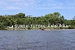 The district borders the South China Sea to the north, Brunei–Muara District to the northeast, Sarawak to the east and south, and Belait District to the west. Covering 1,166 square kilometres (450 sq mi), it is the third-largest district in Brunei.[7] The 137 kilometre Tutong River,[8] the district's primary river, flows from the interior in the south to the South China Sea.[7] Bukit Bedawan, the district's highest point, stands at 529 meters.[9] The district also hosts Tasek Merimbun, Brunei's largest natural lake, designated as an ASEAN Heritage Park since 29 November 1984.[10]
