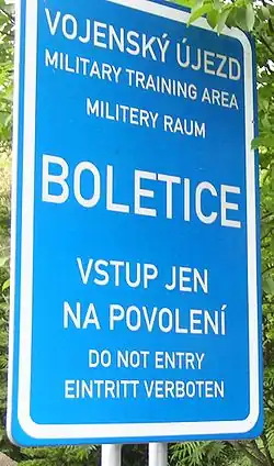 - ^ "Vláda zrušila vojenský újezd Brdy, další čtyři cvičiště se zmenší". iDnes.cz. 4 January 2012. Retrieved 25 April 2013.