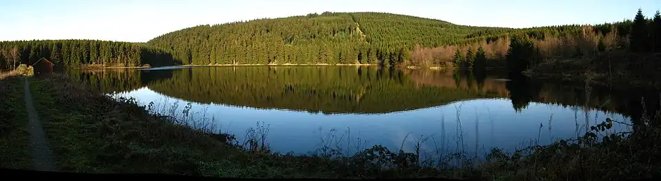 The Upper Harz Water Regale (German: Oberharzer Wasserregal, pronounced [ˌoːbɐhaːɐ̯tsɐ ˈvasɐʁeɡaːl]) is a system of dams, reservoirs, ditches and other structures, much of which was built from the 16th to 19th centuries to divert and store the water that drove the water wheels of the mines in the Upper Harz region of Germany. The term regale, here, refers to the granting of royal privileges or rights[1] (droit de régale) in this case to permit the use of water for mining operations in the Harz mountains of Germany.
