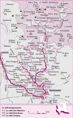 Val Brembana (Lombard: Al Brembàna) is a valley in Lombardy, Northern Italy. It takes its name from the river flowing in it, the Brembo.