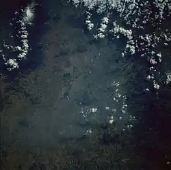 A NASA satellite image of smog in the Valley of Mexico in November 1985