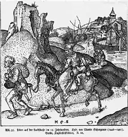 Jenishe on the road, from a 15th-century engraving