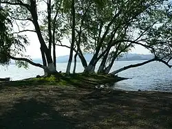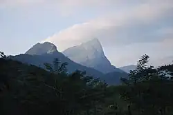 The natural geography can be categorized into nine regions: The Sierra de Zongolica, the Tecolutla Region, the Huayacocotla Region, the Metlac River area, the Tuxtlas Region, the Central Region, the Laguna del Castillo Region, the Pueblo Viejo-Tamiahua Region and the Laguna de Alvarado Region.[30] The topography changes drastically, rising from the narrow coastal plains to the highlands of the eastern Sierra Madre. Elevation varies from sea level to the Pico de Orizaba, Mexico's highest peak at 5,636 m (18,491 ft) above sea level.[29][15] The coast is home to numerous tidewater streams and lagoons, which alternate with low strips of sand.[31] Most of the long coastline is narrow and sandy with unstable dunes, small shifting lagoons, and points.[30]
