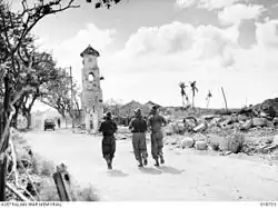 Since the 15th century, the town area including other parts of Labuan were under the Bruneian Empire.[1][7][8] Its history dates back to the time when the island was ceded by Sultan Omar Ali Saifuddin II to the British.[1][9][10] Rodney Mundy, a British naval officer, later visited the island in the name of Queen Victoria.[1][11][3] The island was then occupied by Japan from 3 January 1942 until June 1945 and governed as part of the Northern Borneo military unit by the Japanese 37th Army.[1][12] During the Battle of Labuan it was liberated by the 9th Division of Australian Imperial Force on 10 June 1945 and placed under a British Military Administration until 15 July 1946, when it was incorporated into the North Borneo Crown Colony.[1] During this time, the Crown Colony government re-established much of the infrastructure that had been destroyed during the war.[13][14] The island later became part of the state of Sabah and Malaysia in 1963 before the state government of Sabah ceded the island to the federal government in 1984.[1] It was declared an international offshore financial centre and free trade zone in 1990 to assist the development of Victoria.[1][15]