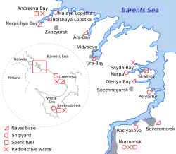 Vidyayevo (particularly the Ara Bay) was the home base of the now lost K-141 Kursk (which was an Oscar-II class). Naval radioactive waste storage facilities are located at the Ara Bay as well.