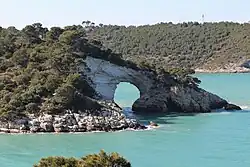 Vieste[3] (Italian: [ˈvjɛste, viˈɛste];[4][5] Viestano: Vìst) is a town, comune and former Catholic bishopric in the province of Foggia, in the Apulia region of southeast Italy. A marine resort in Gargano, Vieste has received Blue Flags for the purity of its waters from the Foundation for Environmental Education. The area covered by the comune is included in the Gargano National Park.