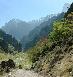 The Vikos Gorge has been carved over millions of years by the Voidomatis river, a tributary of the Aoös. The Voidomatis is mostly seasonal, with year-round flow occurring only in the lower part of the gorge.[9] Due to its nature, the area of the gorge is precipitous and impassable most of the year.[14]