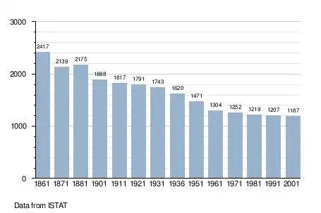 - ^ "Popolazione Residente al 1° Gennaio 2018". Italian National Institute of Statistics. Archived from the original on 30 June 2019. Retrieved 16 March 2019.
