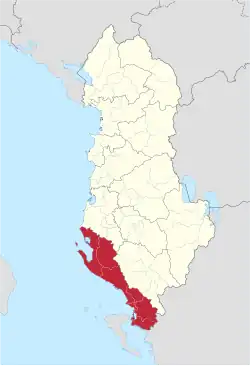 Vlorë County (Albanian pronunciation: [vlɔɽ(ə)]; Albanian: Qarku i Vlorës) is one of the 12 counties of Albania with the city of Vlorë being the county capital. The county spans 2,706 square kilometres (1,045 sq mi) and has a total population of 146,681 people as of 2023.[2] It borders the counties of Fier and Gjirokastër, as well as the Adriatic and Ionian Sea. Greece borders Vlorë to the south.