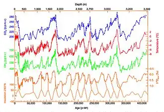 - ^ Vostok Ice Core Data www.ncdc.noaa.gov, 2005-12-22. Retrieved 27 March 2007.