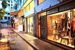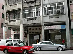 Old-fashioned shops (tong-lau) in Wan Chai are typical examples of Lingnan architecture, comparable to those found in Guangzhou and Taipei. Attached to the second story from the pavement, numerous pillars were built in front of the closed stores.
