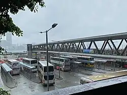 Fleming Road in Wan Chai, filled with buses and taxis.