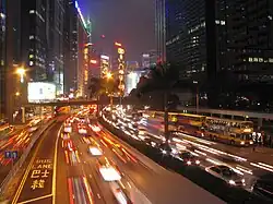Wan Chai originally began as Ha Wan (下環), literally meaning "a bottom ring" or "lower circuit".[1] As one of the earliest developed areas in Hong Kong along the Victoria Harbour, Central ("centre ring" in Chinese), Sheung Wan ("upper ring"), Sai Wan ("western ring") and Wan Chai are collectively known as the four rings (四環) by the locals. Wan Chai literally means "a cove" in Cantonese, from the shape of its coastal line; however, owing to drastic city development and continual land reclamation, the area is no longer a cove.