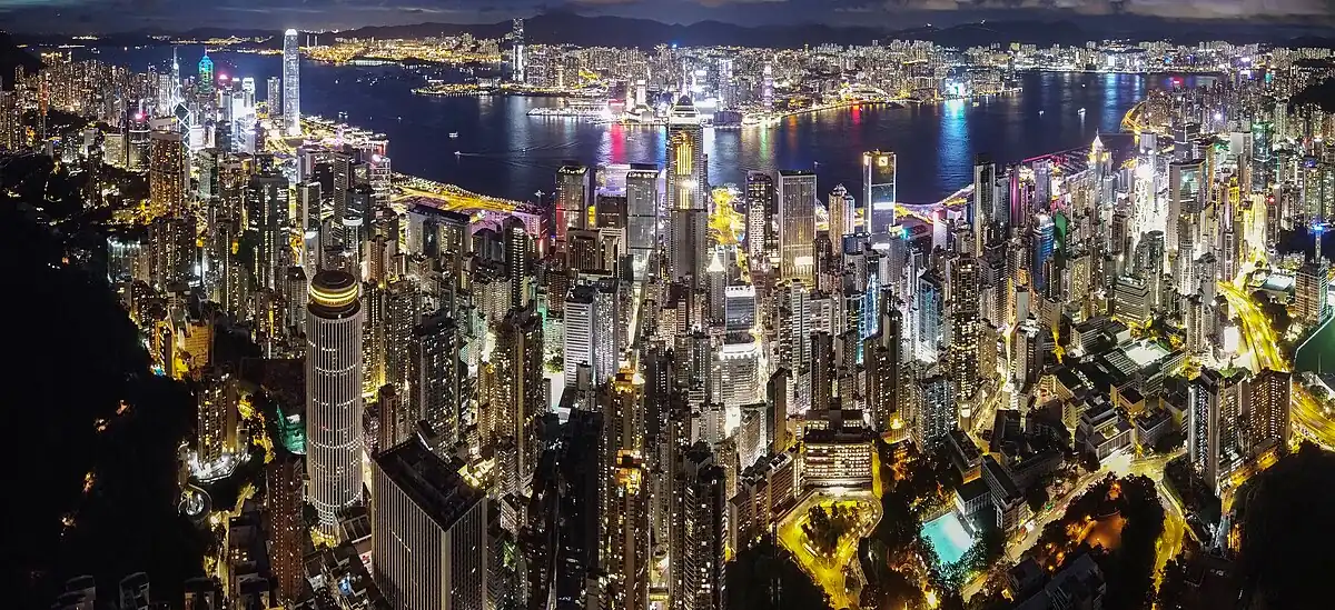 Panorama of Wan Chai, Hong Kong, taken from a lookout along Stubbs Road near Victoria Peak