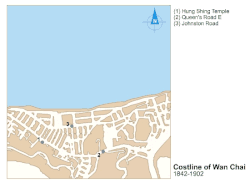 Wan Chai was the first home to many Chinese villagers living along the undisturbed coastlines in proximity to Hung Shing Temple. Most of them were fishermen, who worked around the area near Hung Shing Temple overlooking the entire harbour. Hung Shing Ye, the God of the Sea, was one of the deities worshipped by the locals.[2]