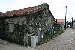 16. ^ "Jhongshe Historical House". PENGHU NATIONAL SCENIC AREA. 21 December 2017. Retrieved 31 October 2019. Jhongshe, Wangan Township, Penghu County{...}In 1971, the late president Chiang Ching-kuo visited the flower house, and seeing that it sits in the middle of four other villages in Wang an Township, renamed it "Jhongshe" (the village in the middle).{...}The architecture style of the historical houses in Jhongshe Village is called "one stamp" style sanheyuan.