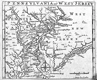 | 1674 | Original Duke of York Line (did not recognize John Fenwick's holdings) | Barnegat Bay to Rancocas Creek on the Delaware River just north of present-day Philadelphia. |