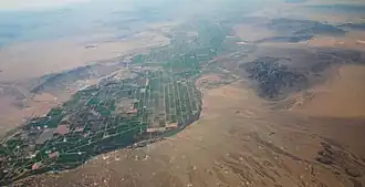 ![]() (view to south) Aerial view of West Riverside Mountains & Riverside Mountains at center right. The Big Maria Mountains are above at right (on horizon) to the south. The small mountain range across the Colorado River in Arizona (to the east) is the Mesquite Mountains. | |