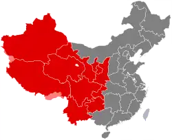 Western China (中国西部 or 华西) is the west of China. It consists of Southwestern China and Northwestern China. In the definition of the Chinese government, Western China covers six provinces (Sichuan, Guizhou, Yunnan, Shaanxi, Gansu, and Qinghai), three autonomous regions (Tibet, Ningxia, and Xinjiang), and one direct-administered municipality (Chongqing).