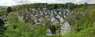 Hilly to mountainous (up to 843 m or 2,766 ft): Westphalian part of the Sauerland, Siegerland, Wittgenstein