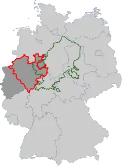 ![]() Westphalia in the state of North Rhine-Westphalia borders on the Northern Rhineland in the west and Lippe in the northeast. | |