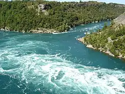French Pass (Te Aumiti) is a narrow and treacherous stretch of water that separates D'Urville Island from the north end of the South Island of New Zealand. In 2000 a whirlpool there caught student divers, resulting in fatalities.[16]