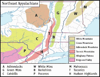 The White Mountains are a physiographic section of the larger New England province, which in turn is part of the larger Appalachian Highlands physiographic division.[2]