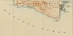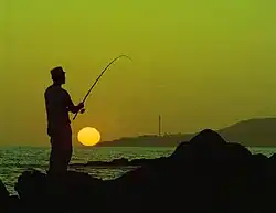 In the last years of the 19th century, White Point was developed as an abalone fishery off Rancho de Los Palos Verdes; the fishermen were mostly immigrants from Japan.[15][3] The land was legally owned by Ramon Sepulveda, who allocated an area for housing the fishermen.[16] The abalone were dried for shipment and sale; the shells were sold for $4 a ton.[17] The abalone fishery was shut down in 1905, in part due to declining take but mostly due to the work of anti-Japanese activists in California.[12]