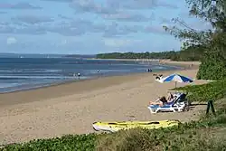Wide Bay was the name given by the early European explorer James Cook to a coastal indentation as he was sailing past Double Island Point.[3] As the Port of Maryborough developed during the 19th century Wide Bay became well known as ships passed through the area before entering the Great Sandy Strait and the port.[4]