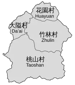 The township comprises four villages: Daai, Huayuan, Taoshan and Zhulin.