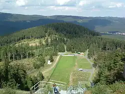 The Wurmberg ski jump in 2006: The treeless strip shows the course of the old Inner German Border; in the background on the right are the outskirts of Schierke