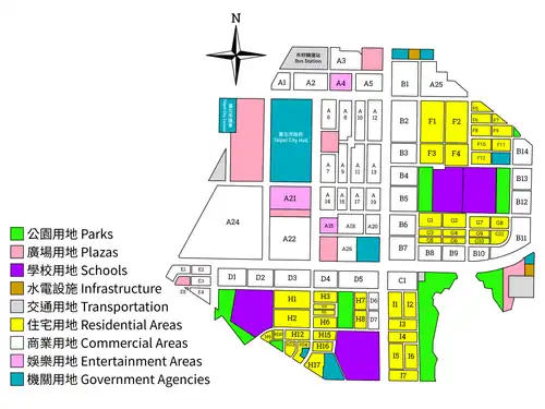 - ^ "What plans and measures are implemented to develop the modern Taipei sub-center, the Xinyi Planning District?". english.gov.taipei. 18 April 2017. Retrieved 2022-06-18.