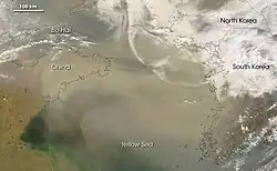 8. ^ Sand storm over Yellow Sea, nasa.gov