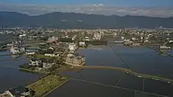 Yilan County sits on the Yilan Plain, a combined alluvial plain created by Lanyang River and other minor streams with a rough shape of triangle. On the three vertices of the triangle sit the Toucheng, Sanxing and Su-ao Townships with a roughly equal distance of 30 km on the three sides. The Xueshan Range sits on the northwest of Yilan County from Toucheng to Sanxing. The county is geographically divided into the cliffs and the plains. The Central Mountain Range sits to the south from Sanxing to Su'ao.[8]
