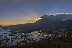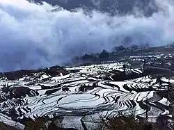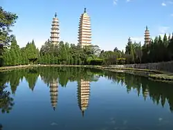 The name "Yunnan" first referred to a place when the Han dynasty created Yunnan County near modern Xiangyun.[14] During the Tang dynasty, Emperor Xuanzong gave Piluoge, the chief of Nanzhao, the title of "King of Yunnan",[15] because Nanzhao originated from Yunnan county.[16] Gradually the king of Yunnan controlled more and more territory, and "Yunnan" became the common name of this area.[17] Therefore, the Yuan dynasty created Yunnan Province after it occupied the Dali Kingdom.[15]