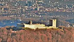 The name is probably derived from Proto-Slavic word *grębъ which means "hill" or "uplift". An Old Croatian reconstructed name Zagrębъ is manifested through the city's former German name, Agram.[31] Some linguists (e.g. Nada Klaić, Miroslav Kravar) propose a metathesis of *Zabreg, which would originate from Old Slavic breg (see Proto-Slavic *bergъ) in the sense of "riverbank", referring to River Sava. This metathesis has been attested in Kajkavian,[32] but the meaning of "riverbank" is lost in modern Croatian and folk etymology associates it instead with breg "hill", ostensibly referring to Medvednica. Hungarian linguist Gyula Décsy similarly uses metathesis to construct *Chaprakov(o), a putative Slavicisation of a Hungarian hypocorism for "Cyprian", similar to the etymology of Csepreg, Hungary.[33] The most likely derivation is *Zagrębъ in the sense of "embankment" or "rampart", i.e. remains of the 1st millennium fortifications on Grič.[32][31]