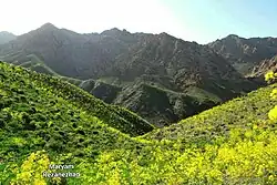 The mountain of Kūh-Zibad is located near Zibad, and is the second-highest mountain in Razavi Khorasan Province. Kūh-Zibad is famous because of some great historical events. Its peak is called Tir Mahi. The terrain around Kuh-e Zibad is mainly hilly. The highest point in the vicinity is 2,775 meters (9,104 ft) above sea level, 17.7 km (11.0 mi) southeast of Qole-e Tir Mahi. Around Kuh-e Zibad is very sparsely populated, with 5 inhabitants per square kilometre. Nearest society Zibad, 8.5 km (5.3 mi) north of Kuh-e Zibad. The neighbourhood around Kuh-e Zibad is barren with little vegetation. In the neighbourhood around are unusually many named mountains and valleys. A cold steppe climate prevailing in the region. The average annual temperature in the area is 17 °C. The warmest month is July when the average temperature is 30 °C, and the coldest is January, with 1 °C. Average annual rainfall is 211 mm (8 in). The rainiest month is February, with an average of 58 mm (2 in) of precipitation, and the driest is July, with 1 mm of precipitation. This mountain had been referred in some historical book such as shahnameh in Davazdah Rokhwar as the Zibad mountain and its eastern part is called black mountain or kouh Gonabad. the long-range mountain called Qohestan and It extends from Bajestan to Birjand near the border with Afghanistan this rang mountain separate south Khorasan from Razavi Khorasan, part of this rang mountain near Kakhk is called black mountain or Kouh e Gonabad